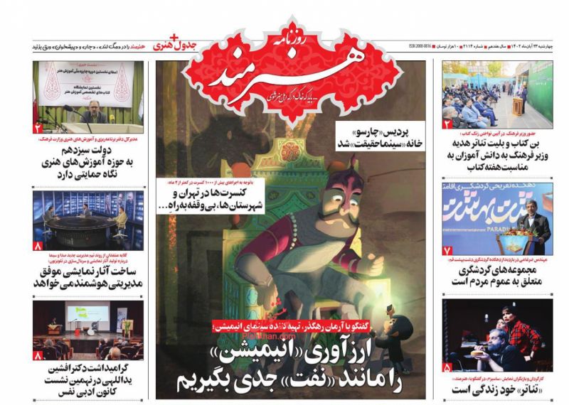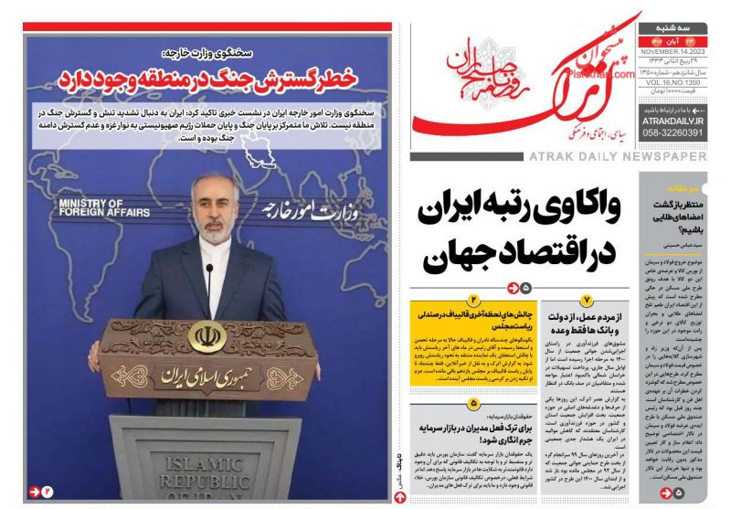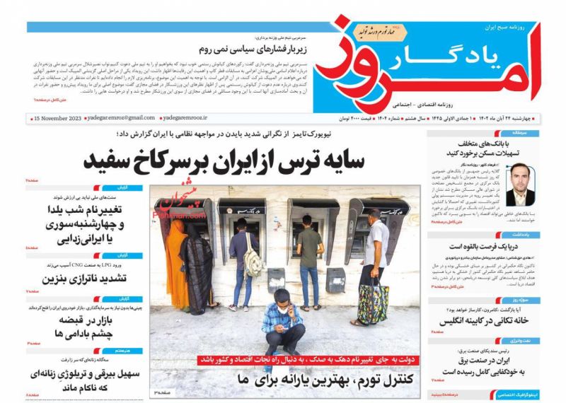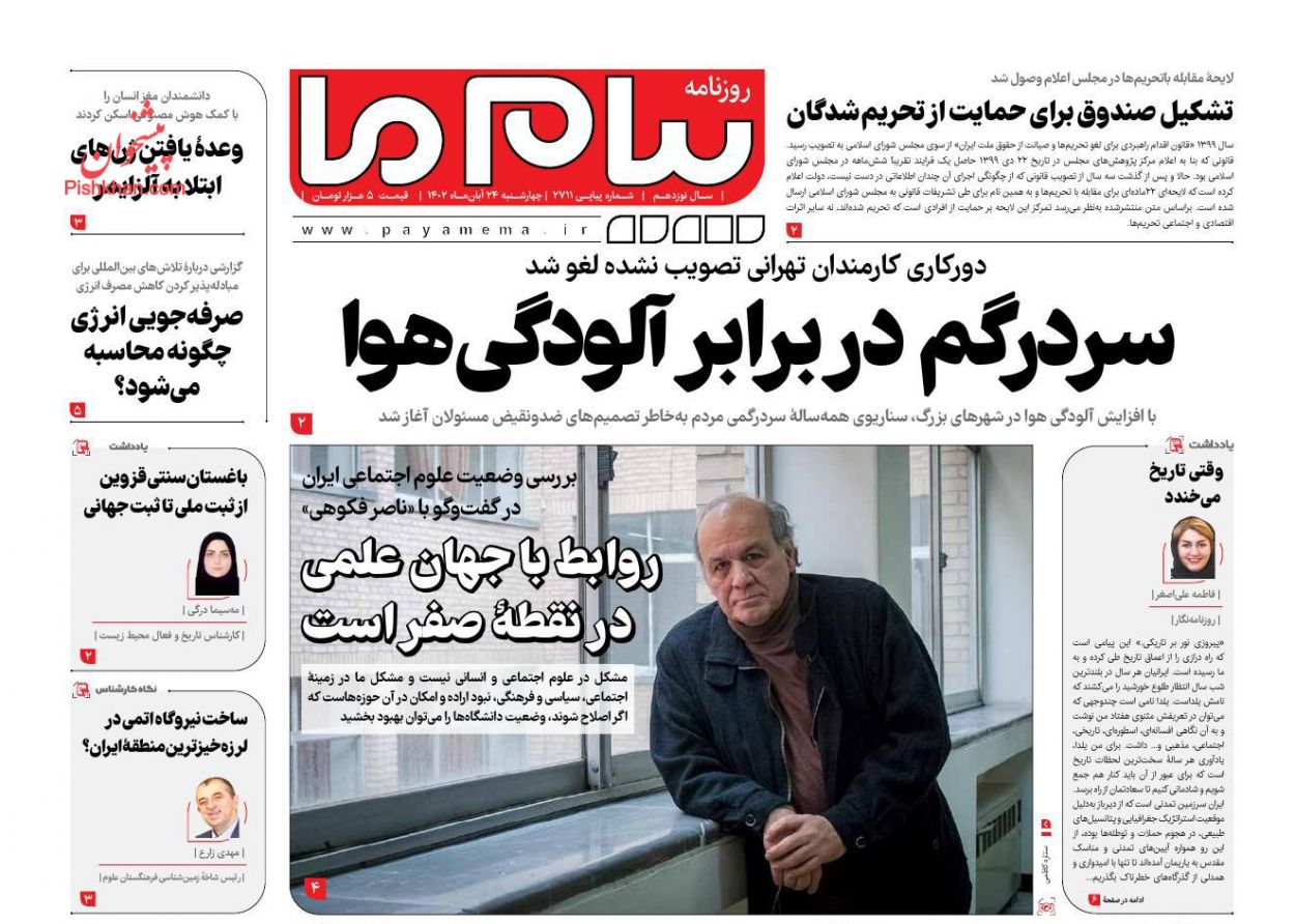 عصر ایرانیان ، چهارشنبه ۲۴ آبان
