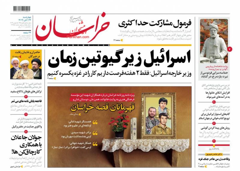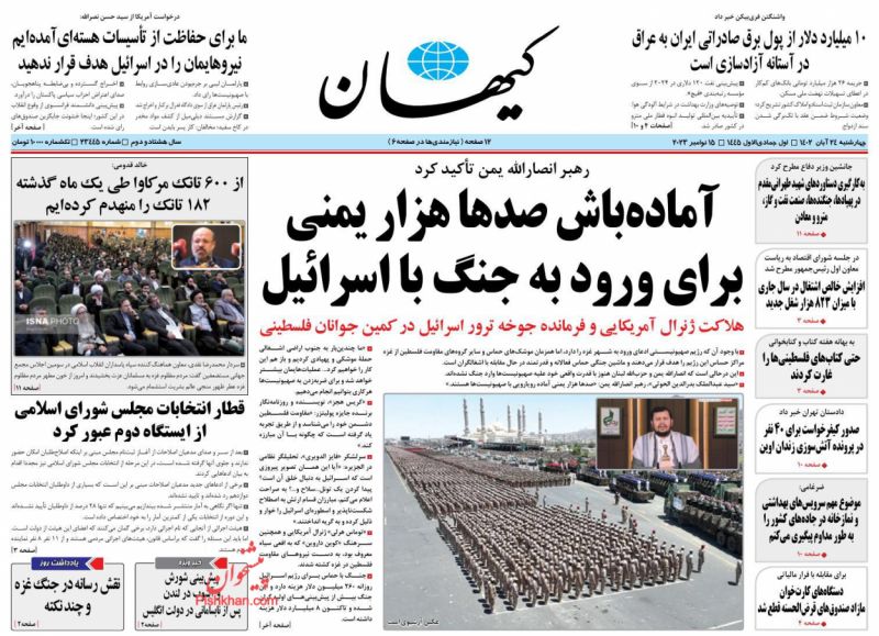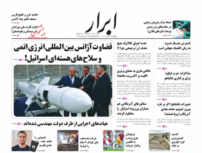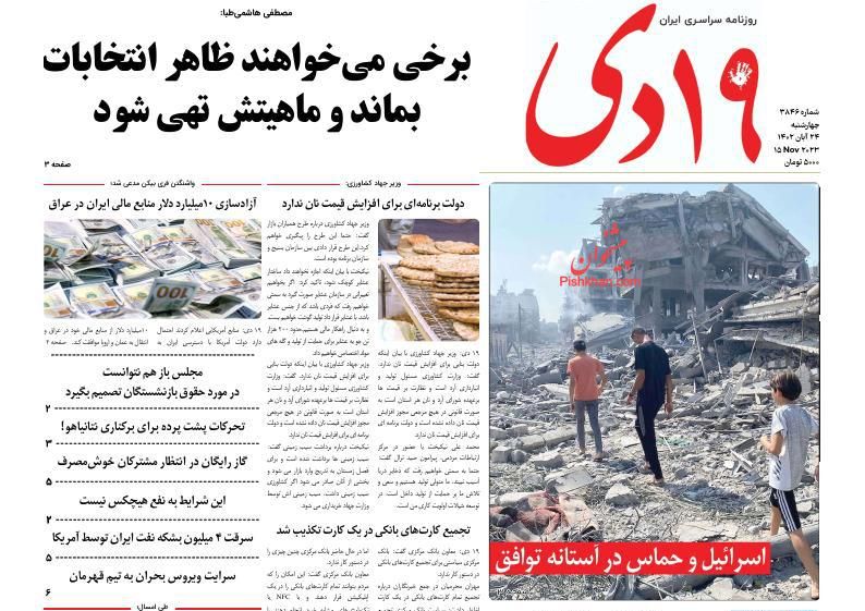 جمهوری اسلامی ، چهارشنبه ۲۴ آبان