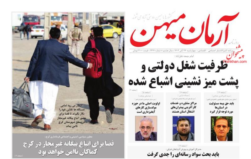 آرمان میهن ، چهارشنبه ۲۴ آبان