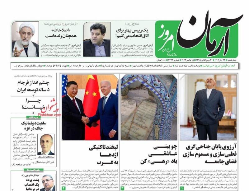 آرمان امروز ، چهارشنبه ۲۴ آبان
