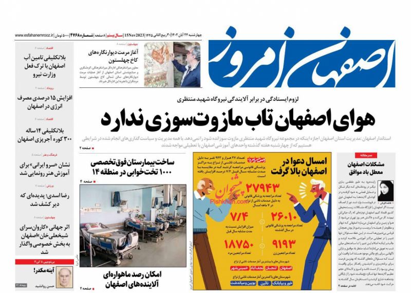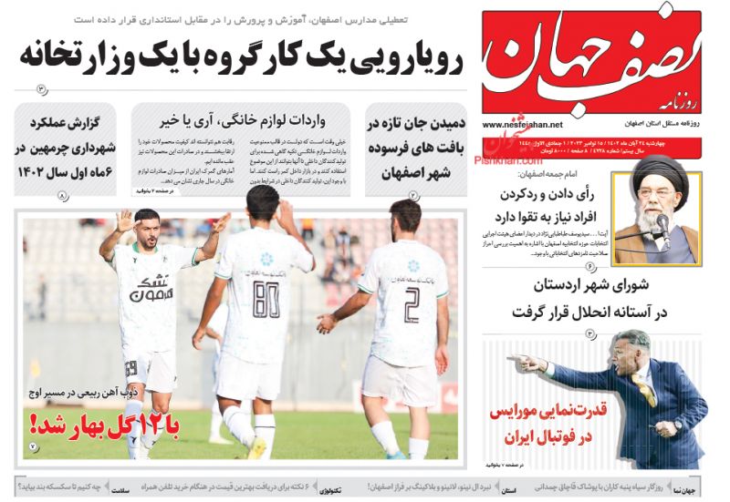 اصفهان امروز ، چهارشنبه ۲۴ آبان