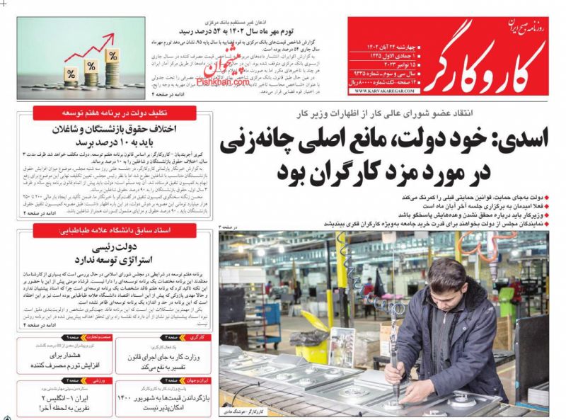 کار و کارگر ، چهارشنبه ۲۴ آبان