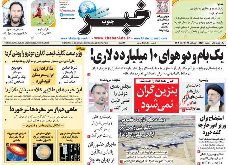خبر جنوب ، چهارشنبه ۲۴ آبان