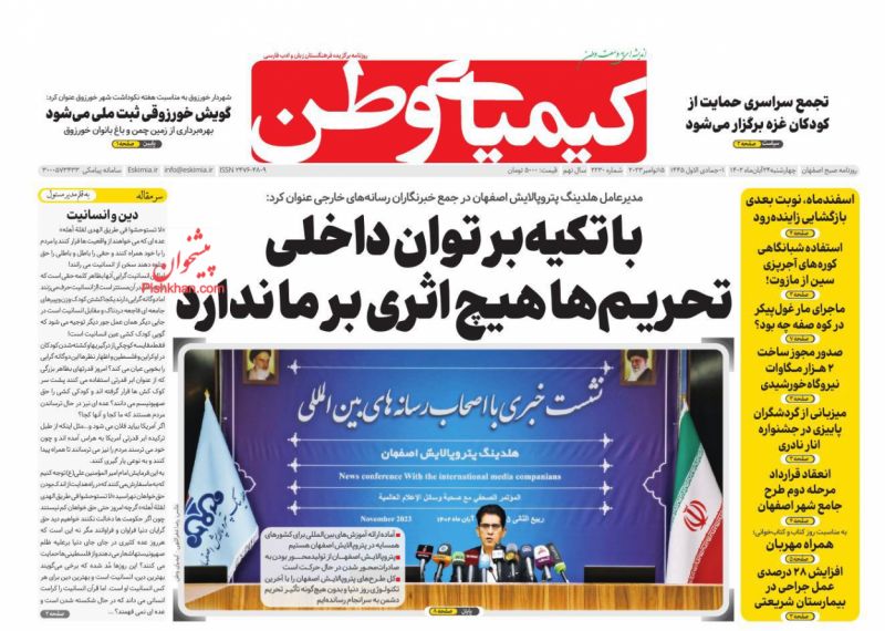 کیمیای وطن ، چهارشنبه ۲۴ آبان