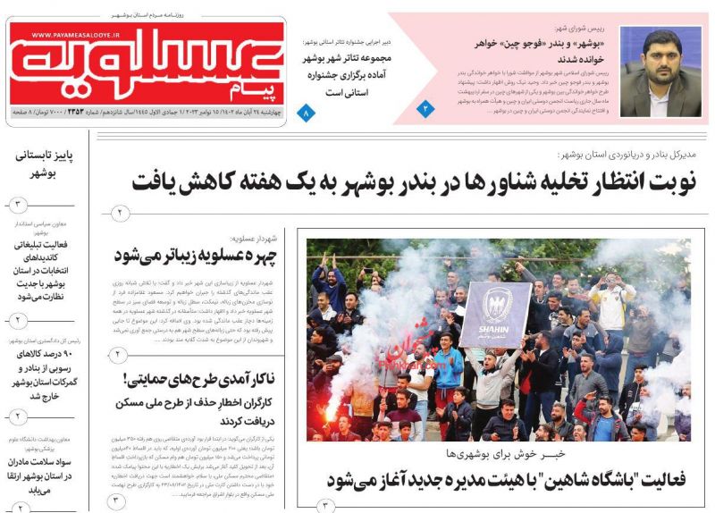 پیام عسلویه ، چهارشنبه ۲۴ آبان