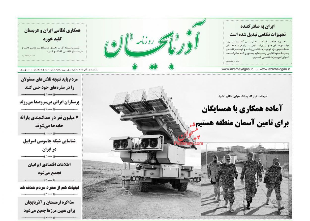 آرمان میهن ، یکشنبه ۱۲ آذر