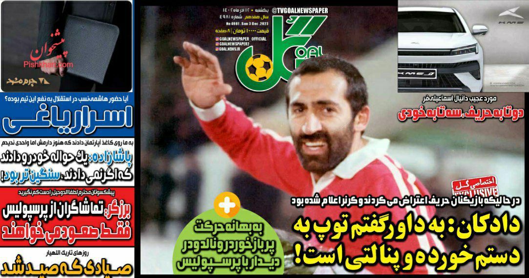 ابرار ورزشى ، یکشنبه ۱۲ آذر
