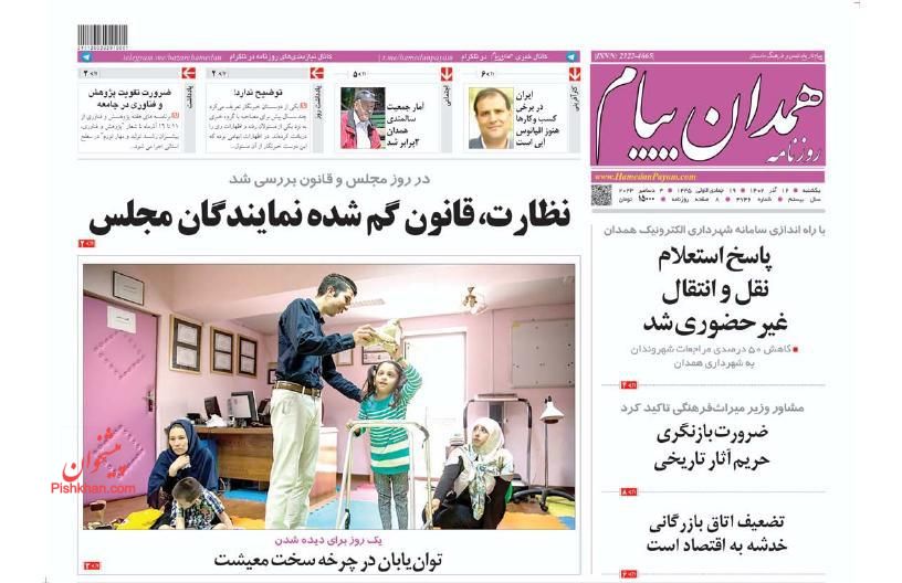 عصر ایرانیان ، یکشنبه ۱۲ آذر