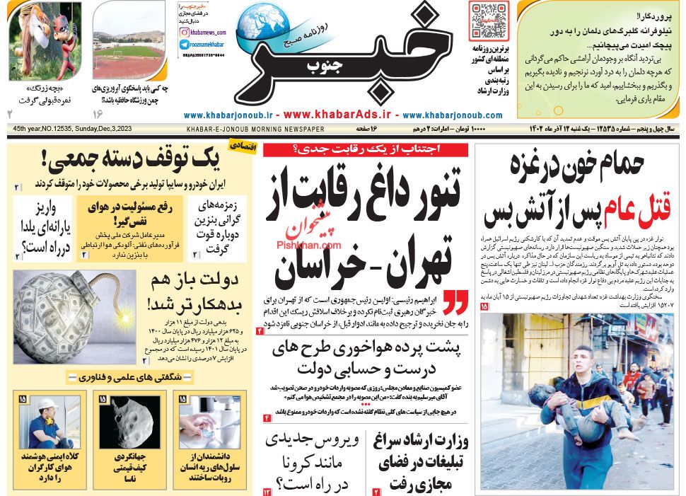 خبر جنوب ، یکشنبه ۱۲ آذر