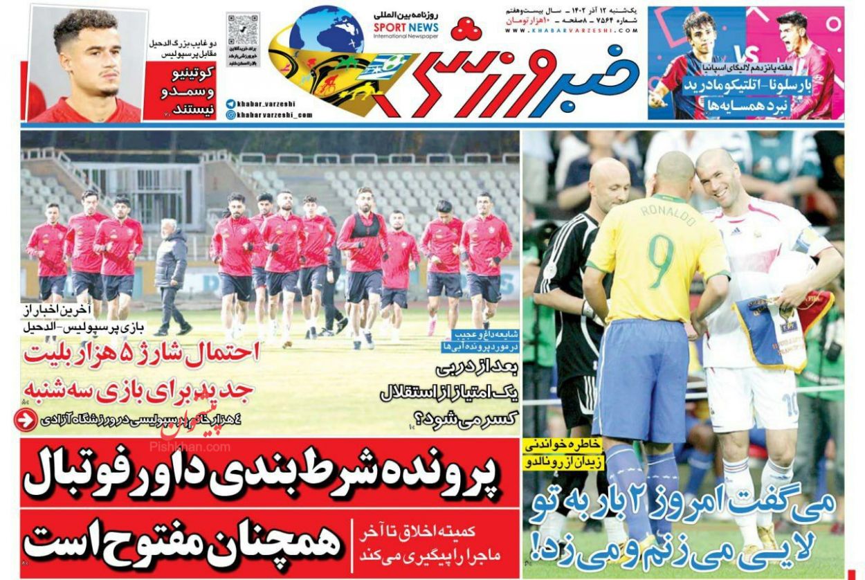 خبر ورزشی ، یکشنبه ۱۲ آذر