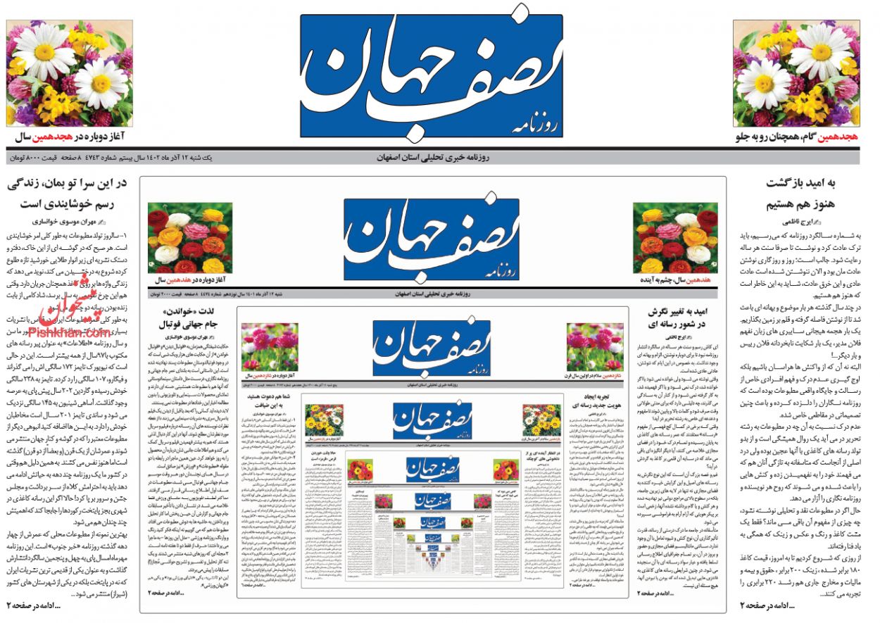 اصفهان امروز ، یکشنبه ۱۲ آذر