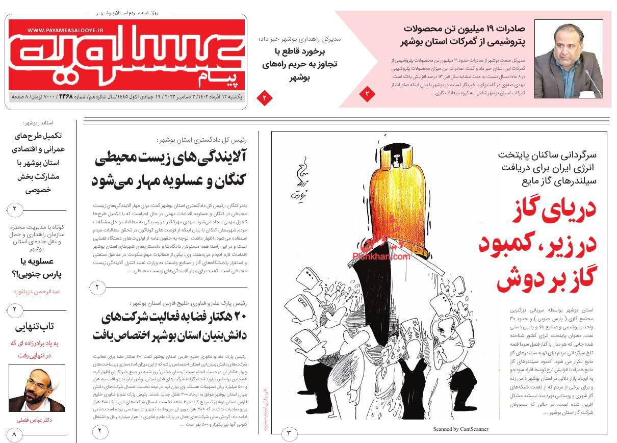 پیام عسلویه ، یکشنبه ۱۲ آذر