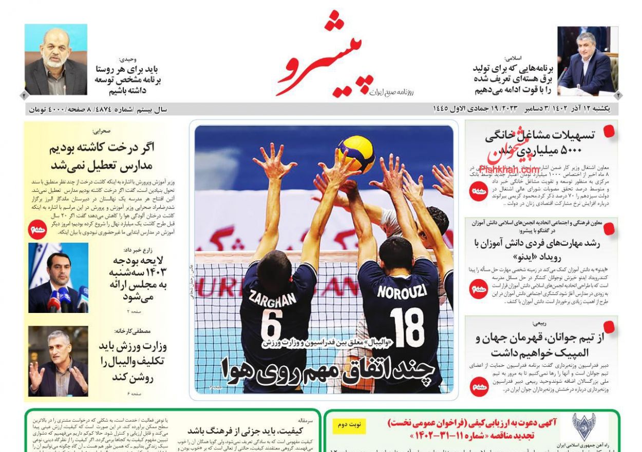 آرمان امروز ، یکشنبه ۱۲ آذر
