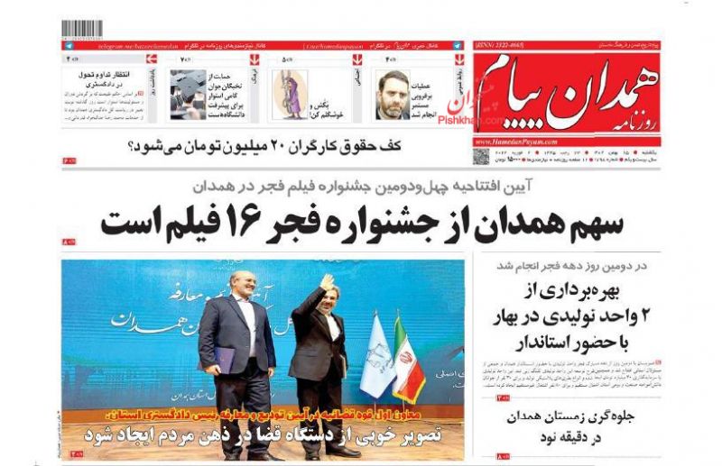 همدان پیام ، یکشنبه ۱۵ بهمن