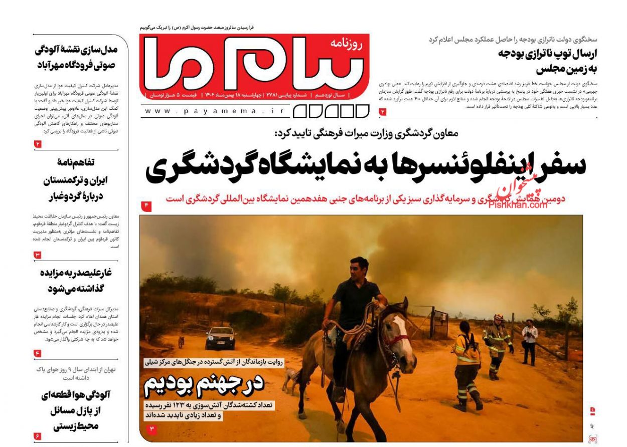 پیام ما ، چهارشنبه ۱۸ بهمن