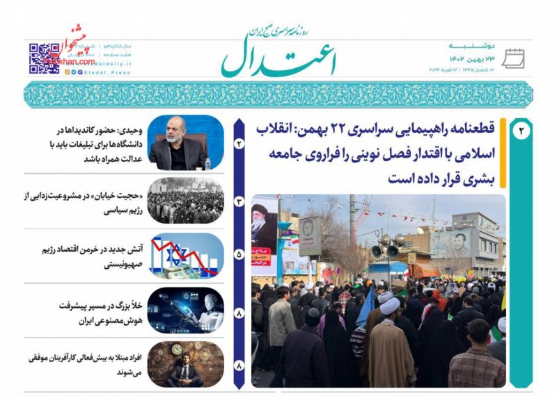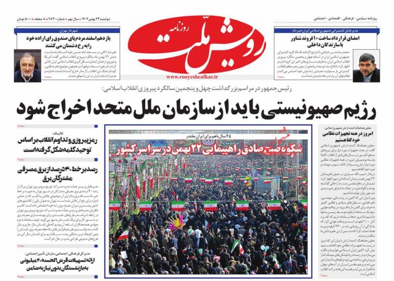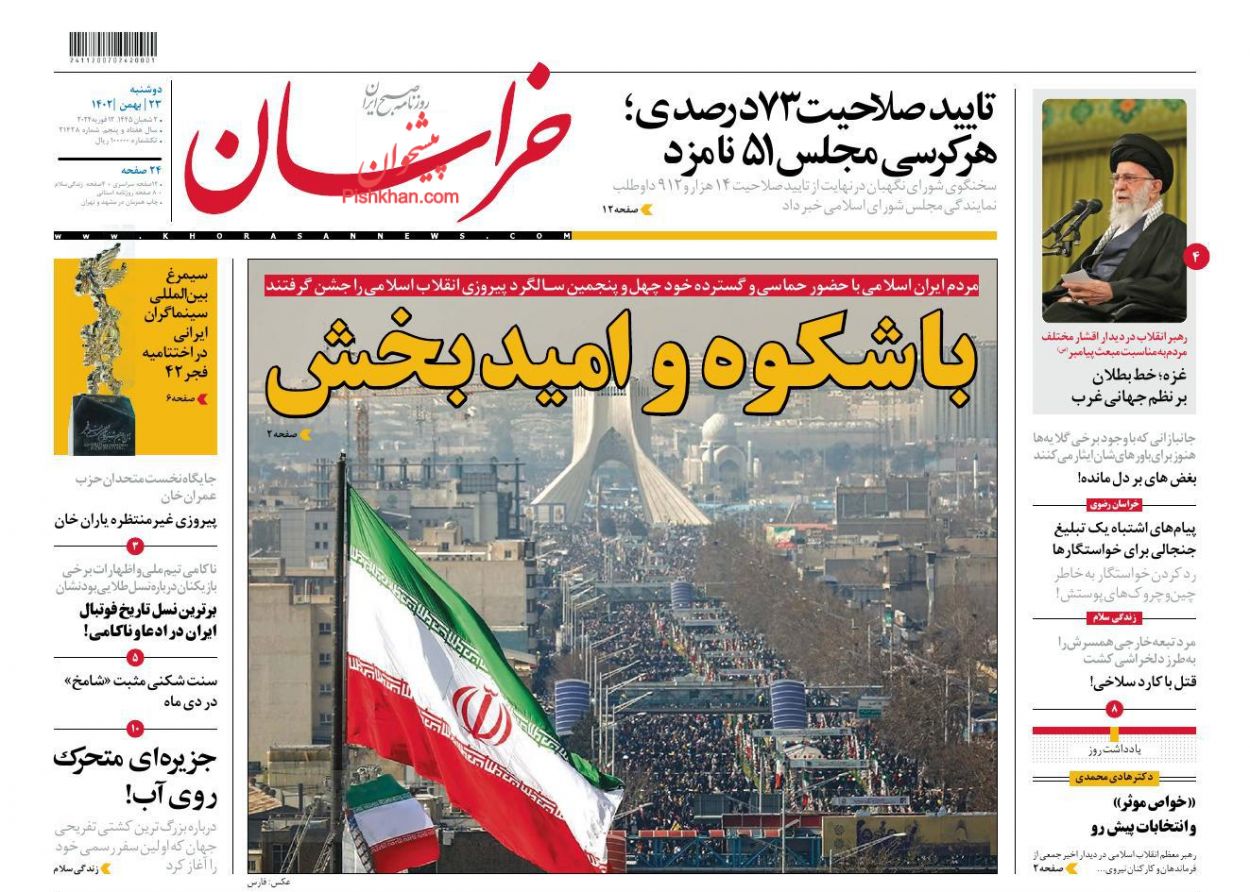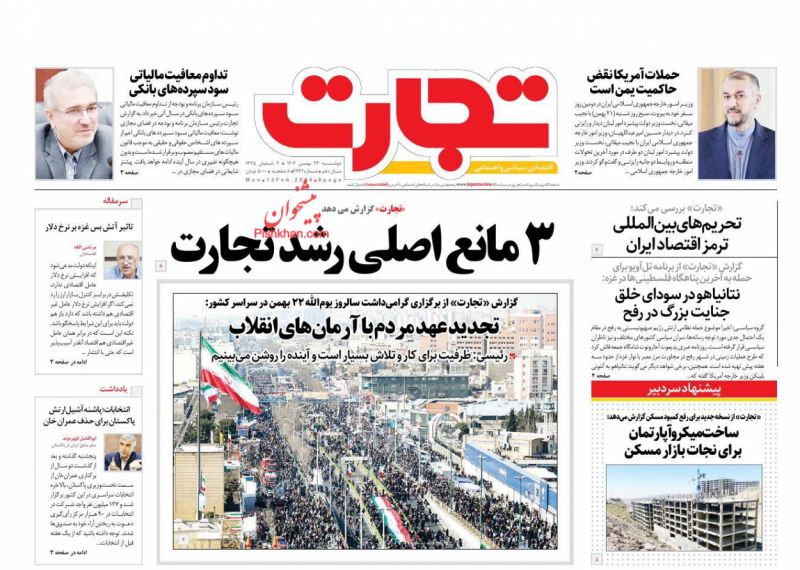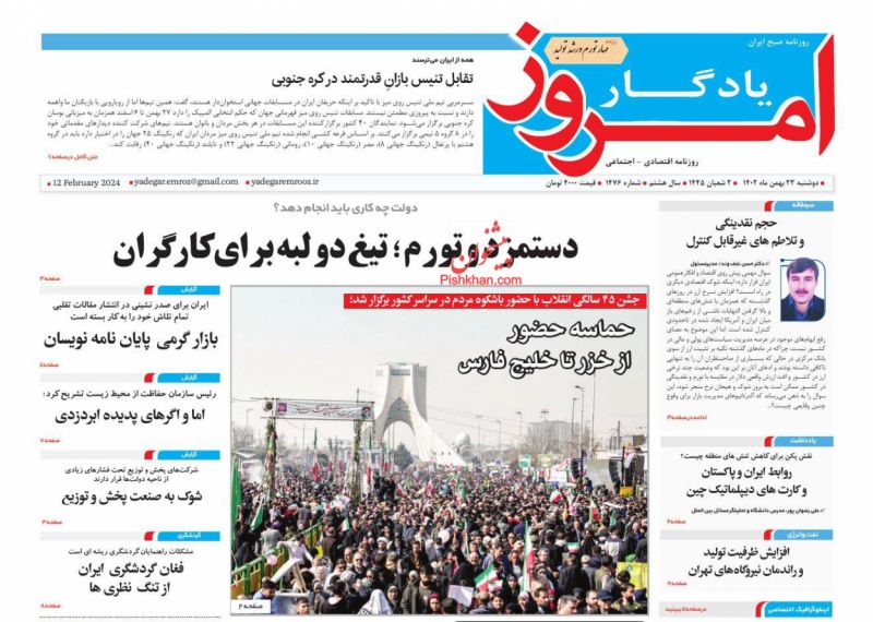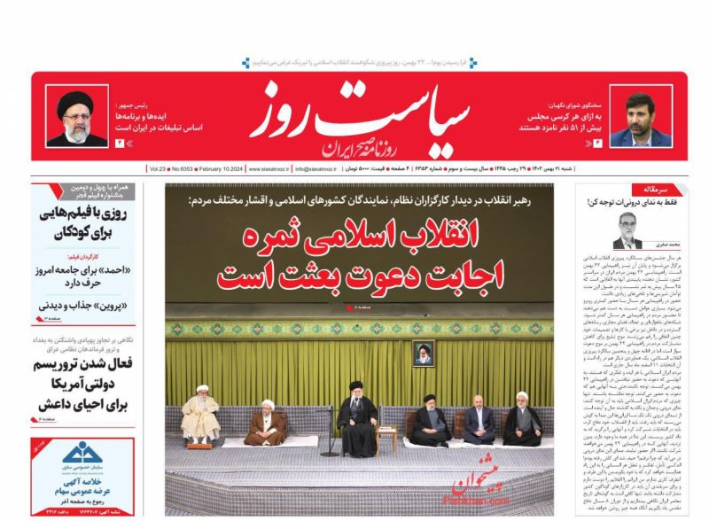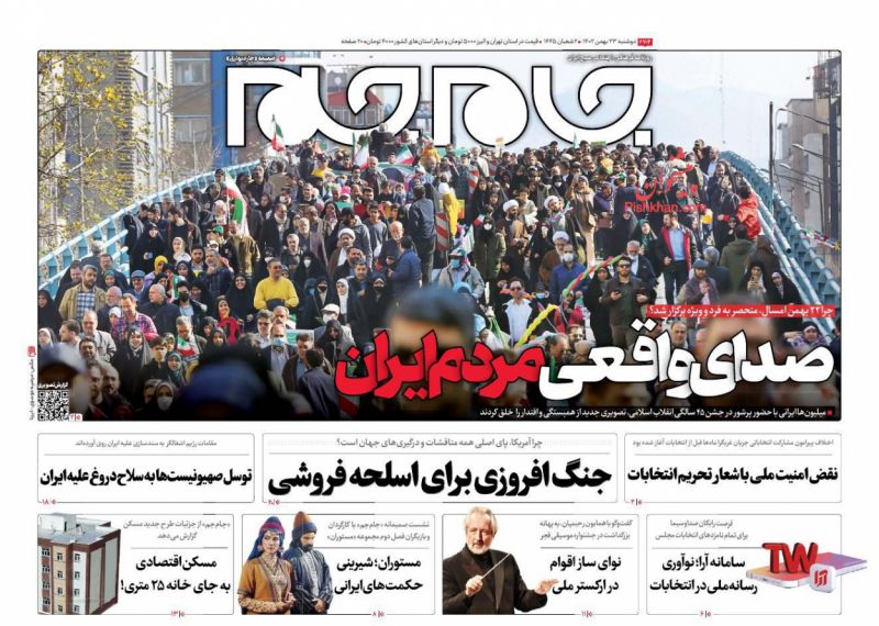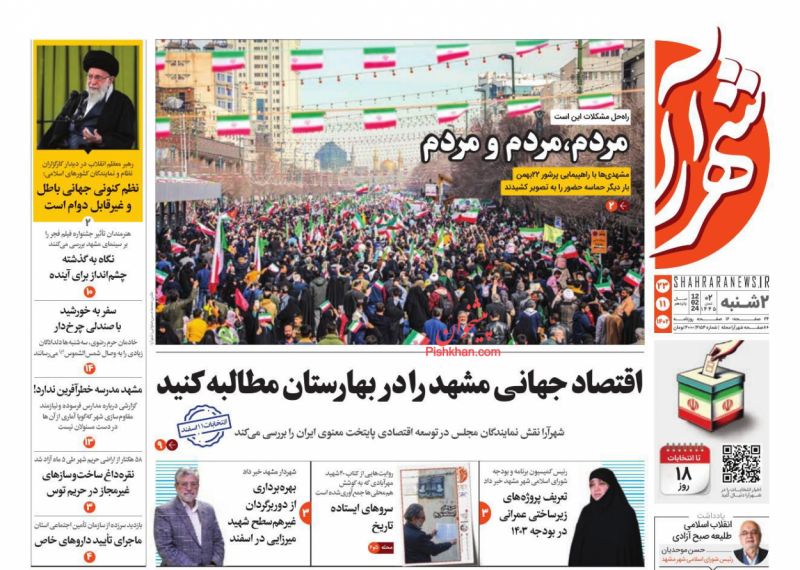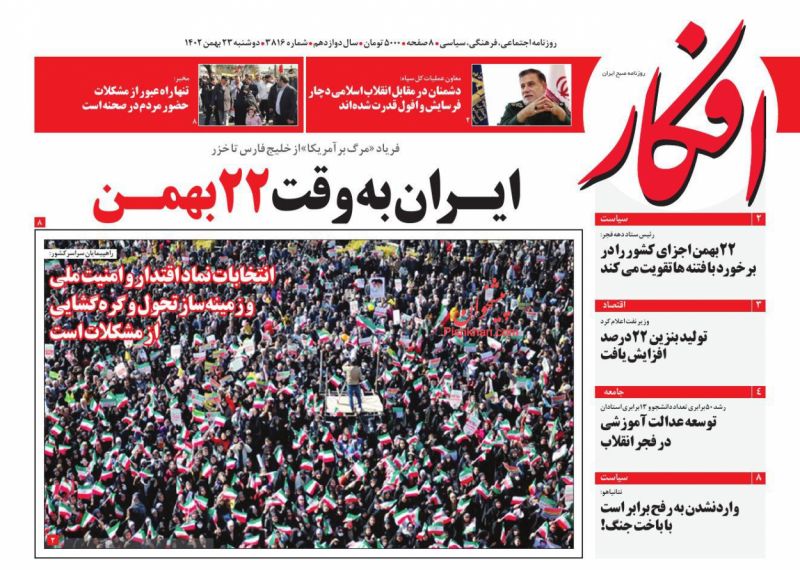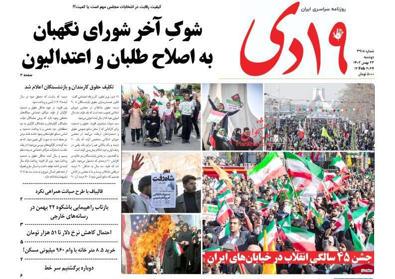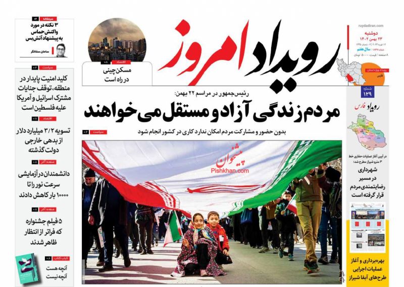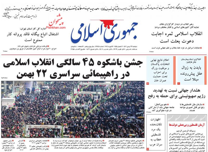 جمهوری اسلامی ، دوشنبه ۲۳ بهمن