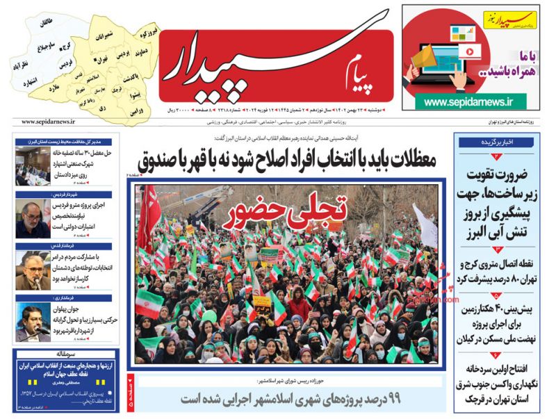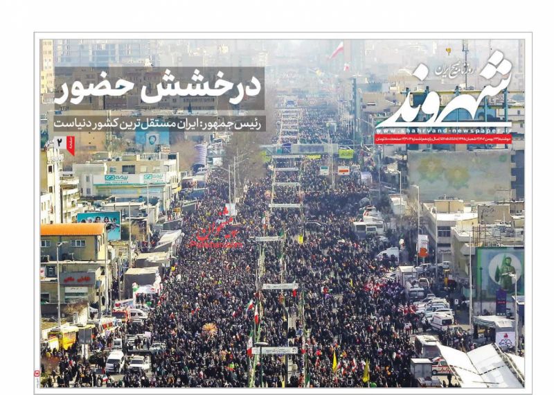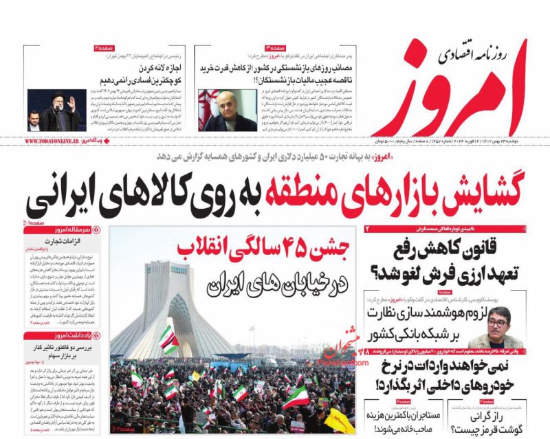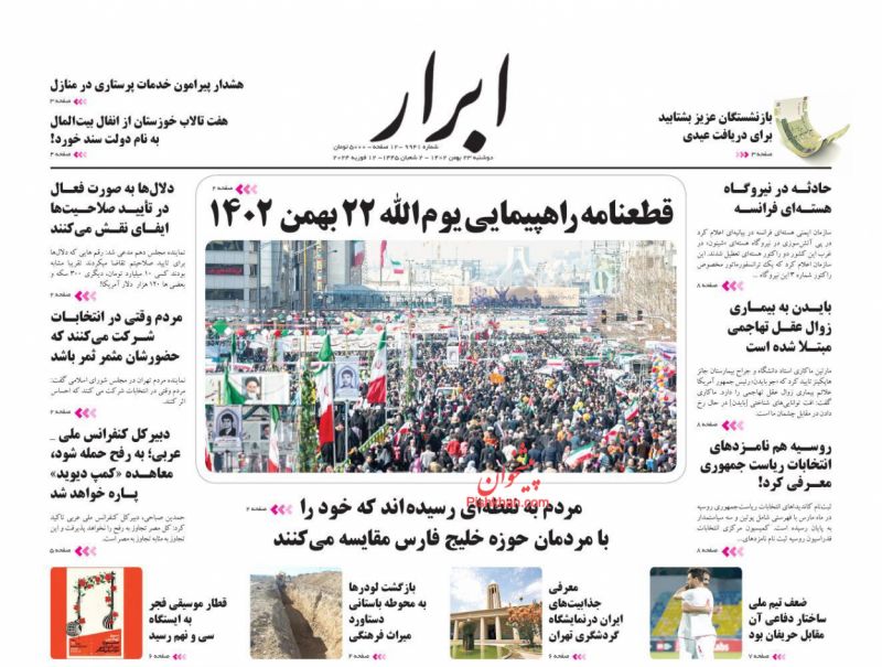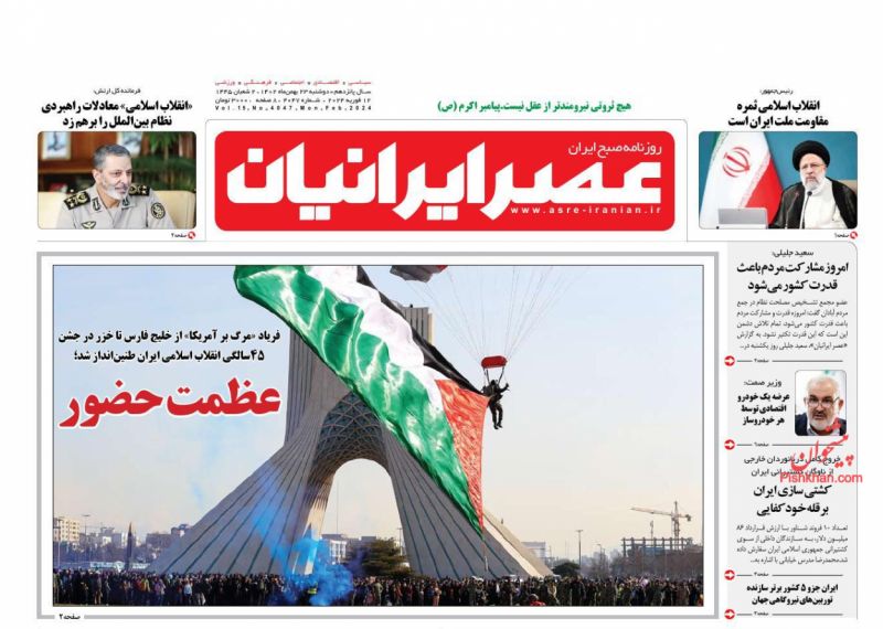 عصر ایرانیان ، دوشنبه ۲۳ بهمن