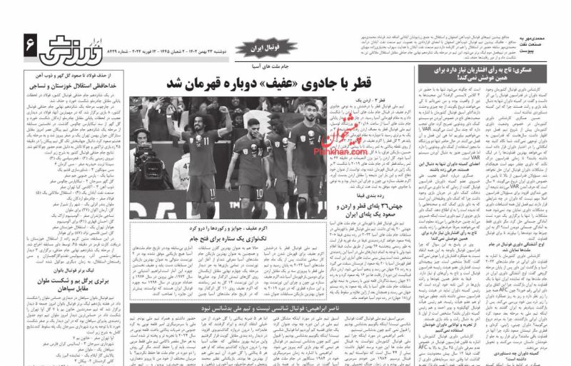 ابرار ورزشى ، دوشنبه ۲۳ بهمن