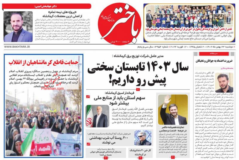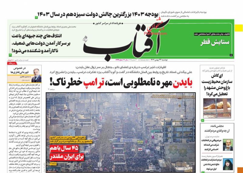 آفتاب یزد ، دوشنبه ۲۳ بهمن