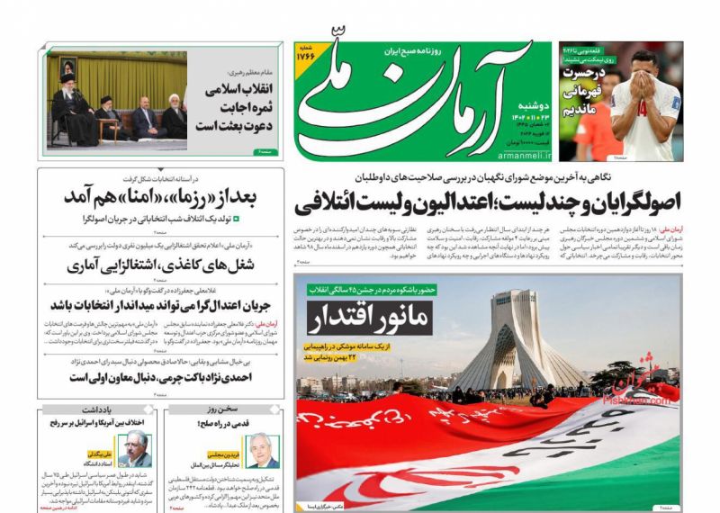 آرمان ملی ، دوشنبه ۲۳ بهمن