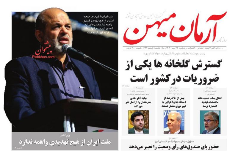 آرمان میهن ، دوشنبه ۲۳ بهمن