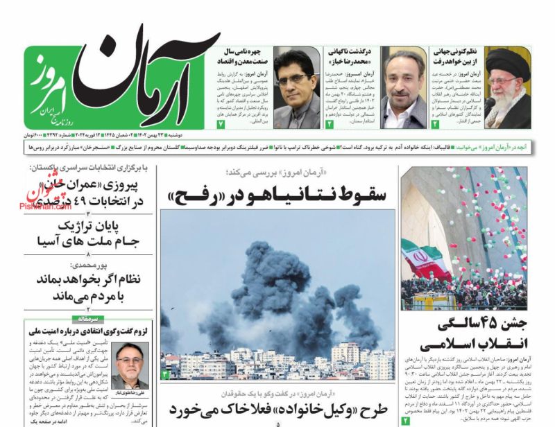 آرمان امروز ، دوشنبه ۲۳ بهمن