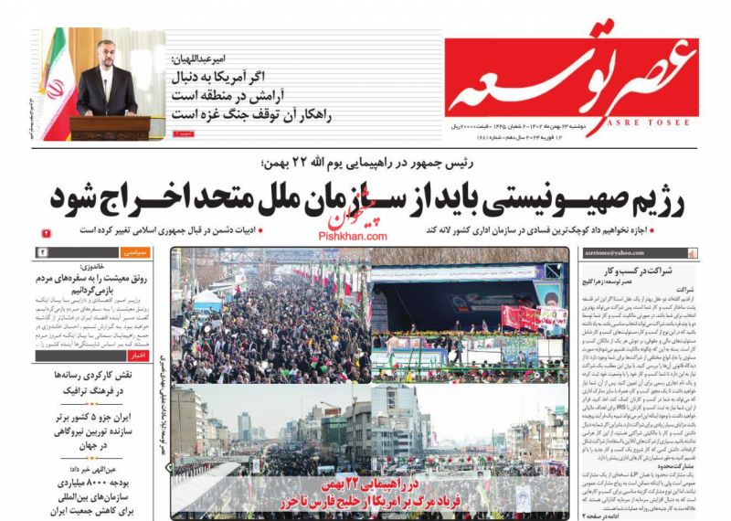 عصر توسعه ، دوشنبه ۲۳ بهمن