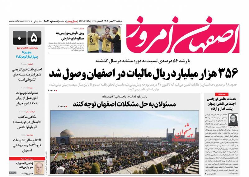 اصفهان امروز ، دوشنبه ۲۳ بهمن