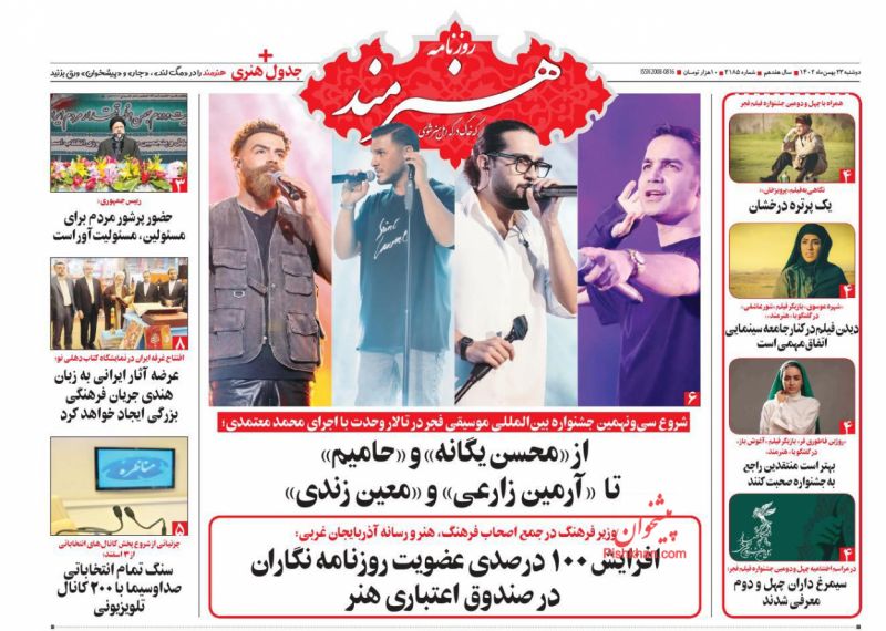 شهرآرا ، دوشنبه ۲۳ بهمن
