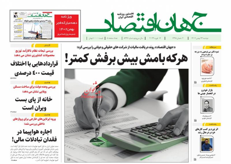 جهان اقتصاد ، دوشنبه ۲۳ بهمن