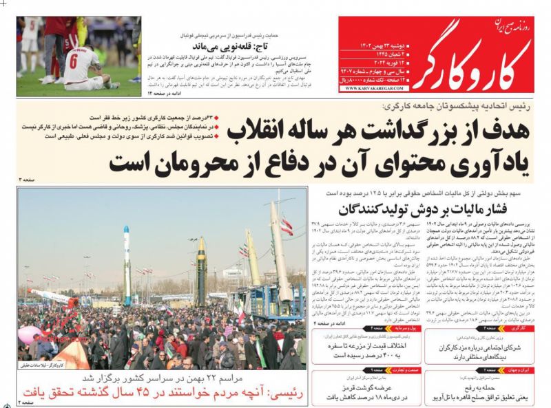 کار و کارگر ، دوشنبه ۲۳ بهمن
