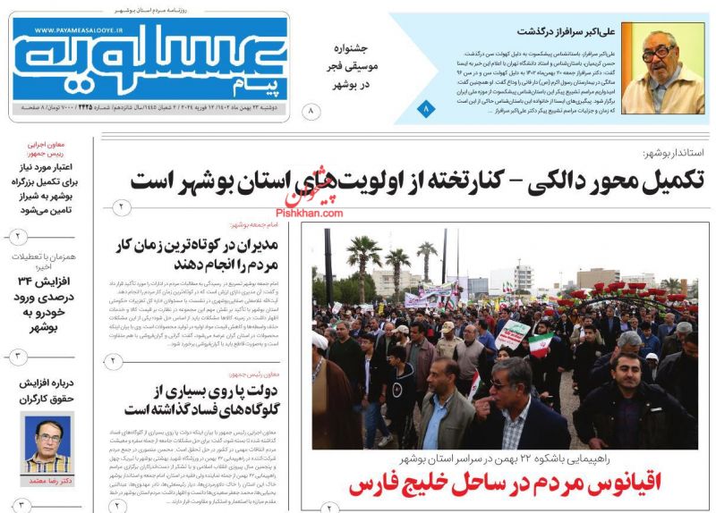 پیام عسلویه ، دوشنبه ۲۳ بهمن