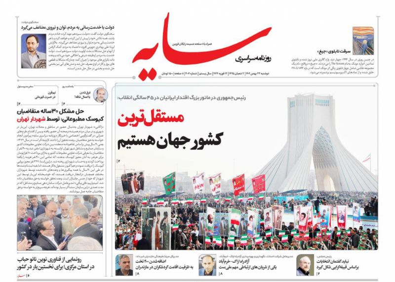 مردم سالاری ، دوشنبه ۲۳ بهمن