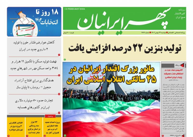 سپهر ایرانیان ، دوشنبه ۲۳ بهمن