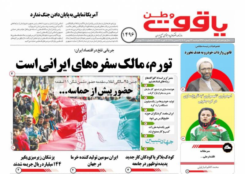 وطن امروز ، دوشنبه ۲۳ بهمن