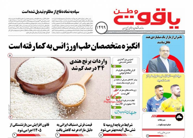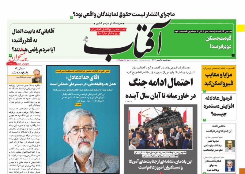 آفتاب یزد ، چهارشنبه ۲۵ بهمن