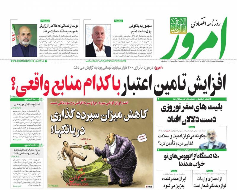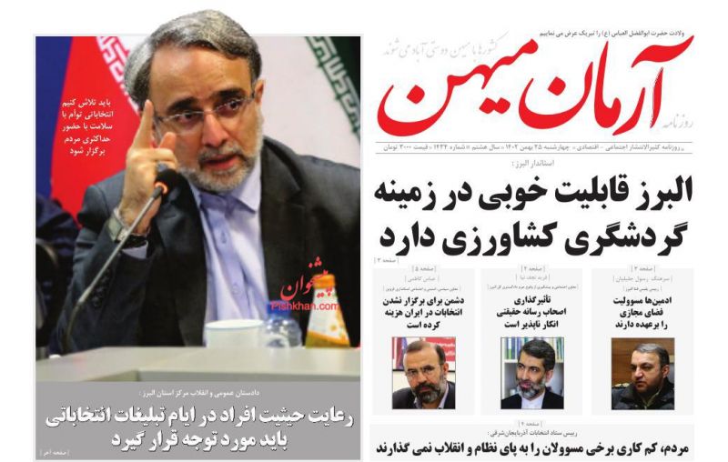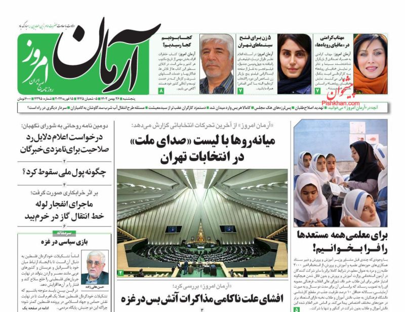 آرمان امروز ، پنجشنبه ۲۶ بهمن