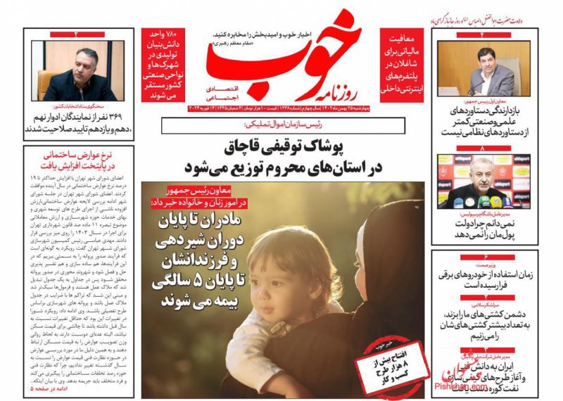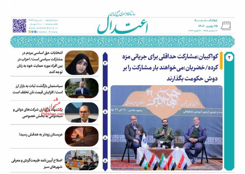 اعتماد ، چهارشنبه ۲۵ بهمن