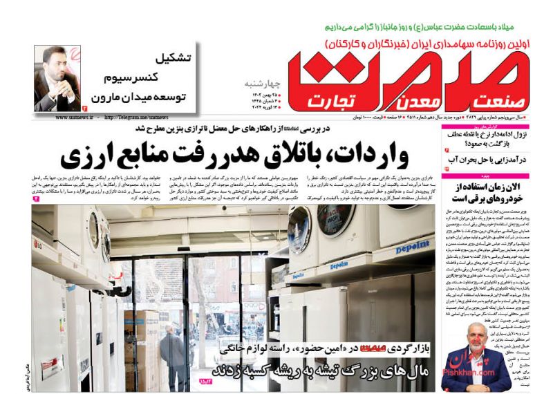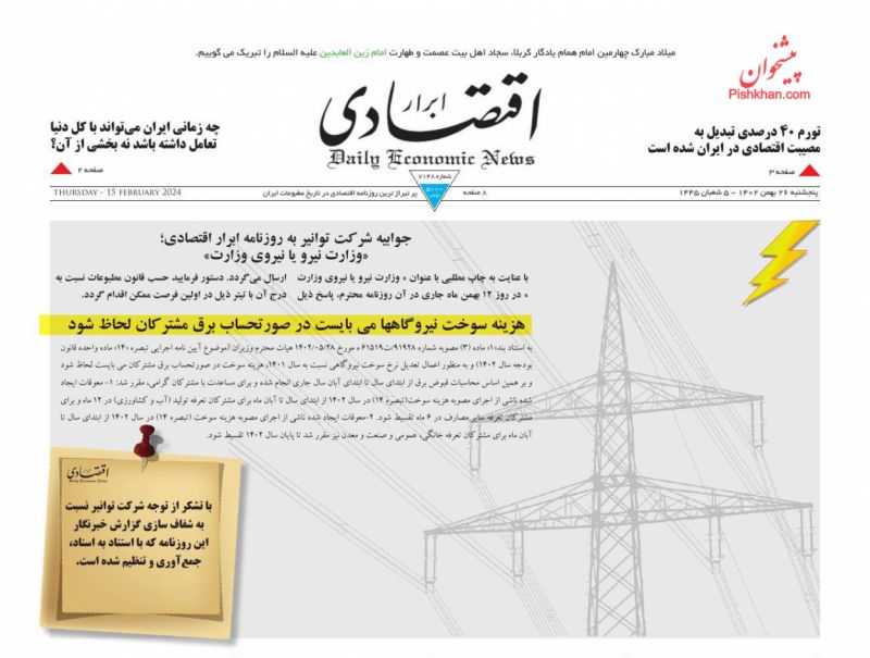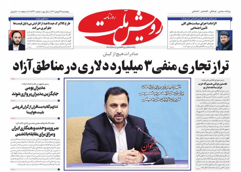 ابرار اقتصادی ، پنجشنبه ۲۶ بهمن