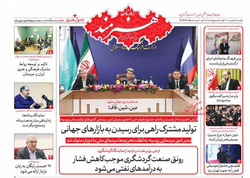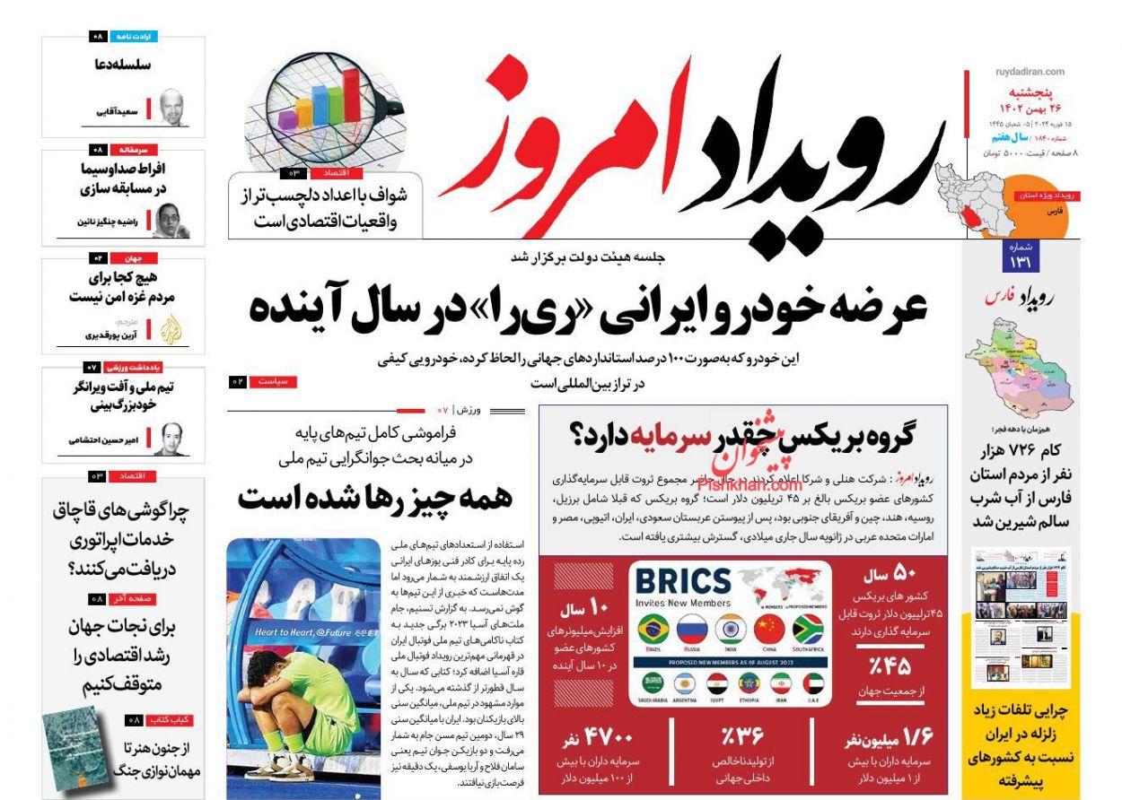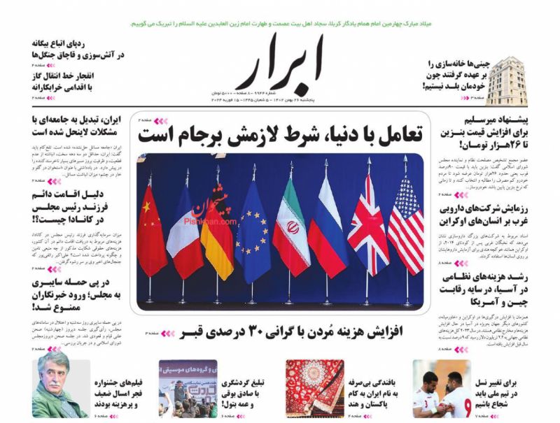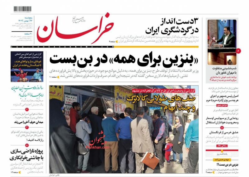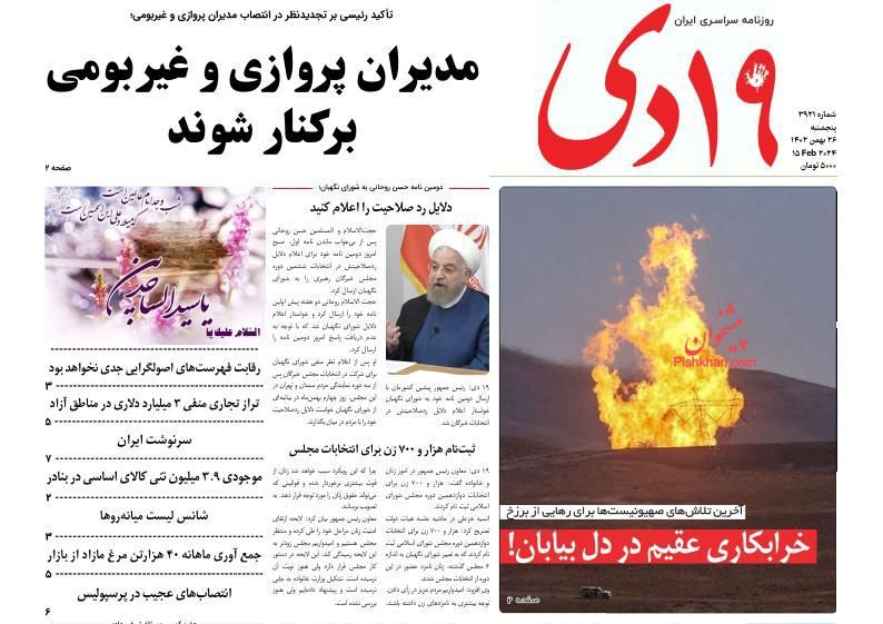 عصر ایرانیان ، پنجشنبه ۲۶ بهمن