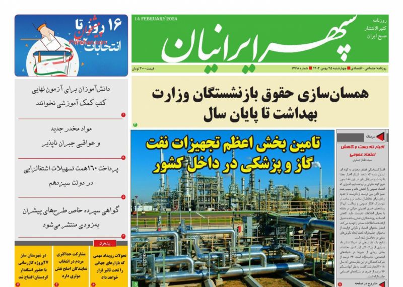 سپهر ایرانیان ، چهارشنبه ۲۵ بهمن