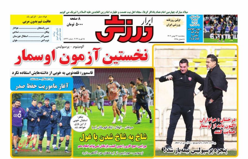 ابرار ورزشى ، پنجشنبه ۲۶ بهمن