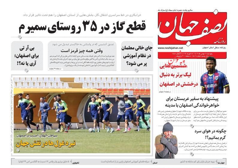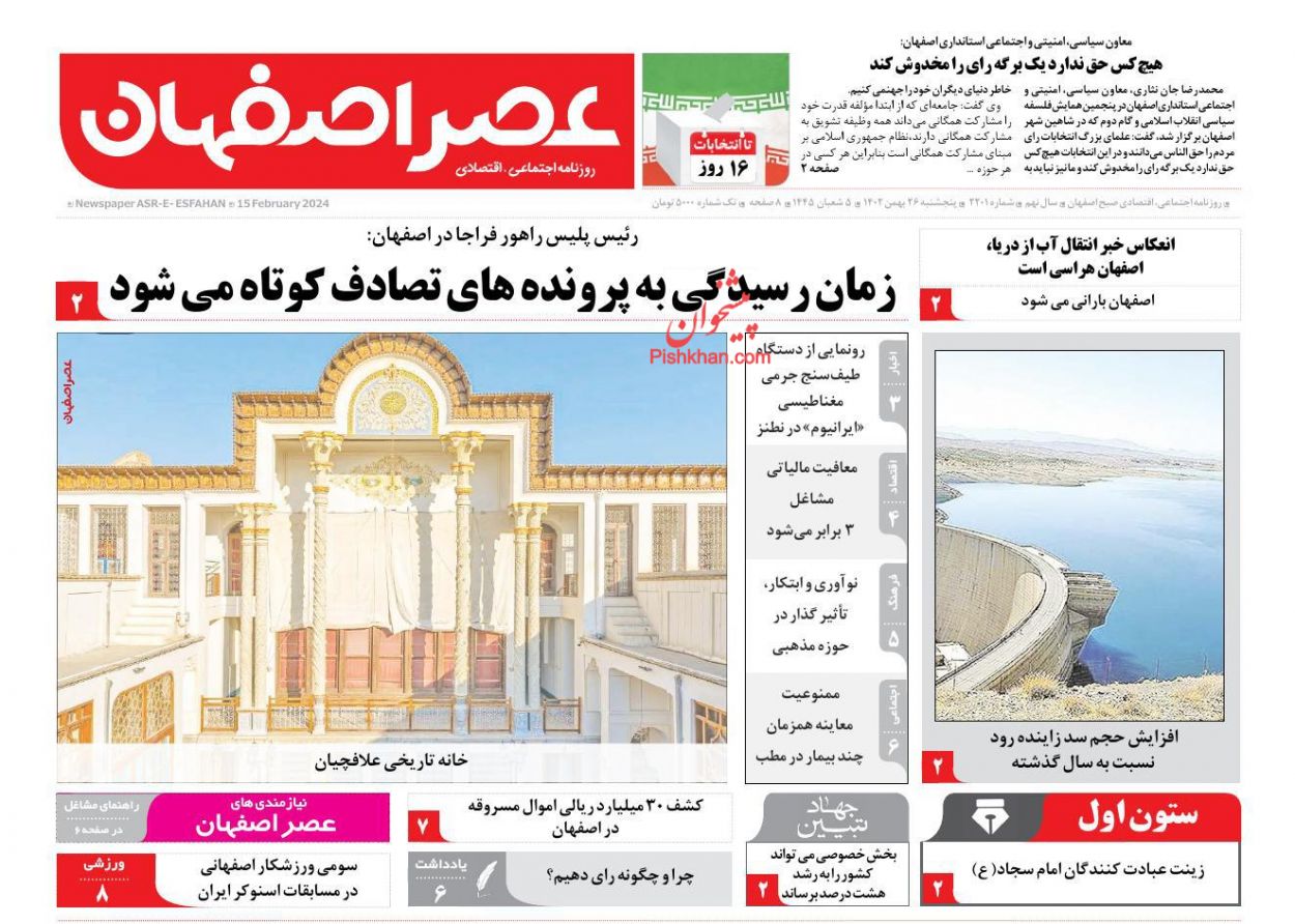 عصر اصفهان ، پنجشنبه ۲۶ بهمن