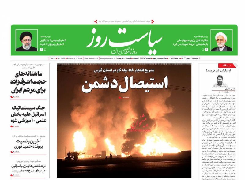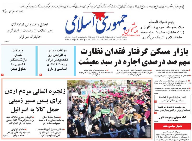 جمهوری اسلامی ، پنجشنبه ۲۶ بهمن