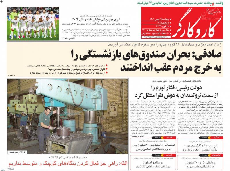 کار و کارگر ، پنجشنبه ۲۶ بهمن