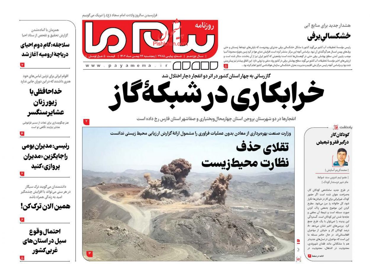 پیام ما ، پنجشنبه ۲۶ بهمن