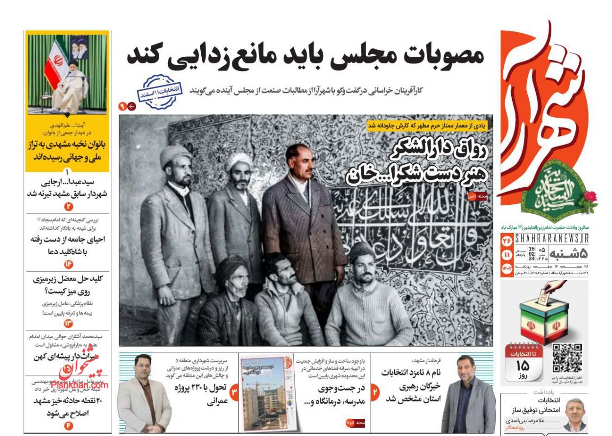 شهرآرا ، پنجشنبه ۲۶ بهمن