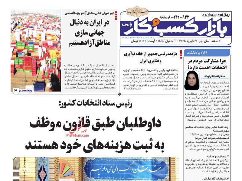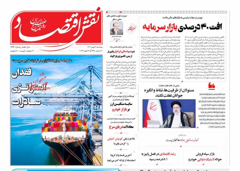 نقش اقتصاد ، پنجشنبه ۳ اسفند
