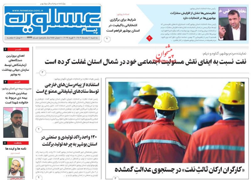 پیام عسلویه ، سهشنبه ۱ اسفند