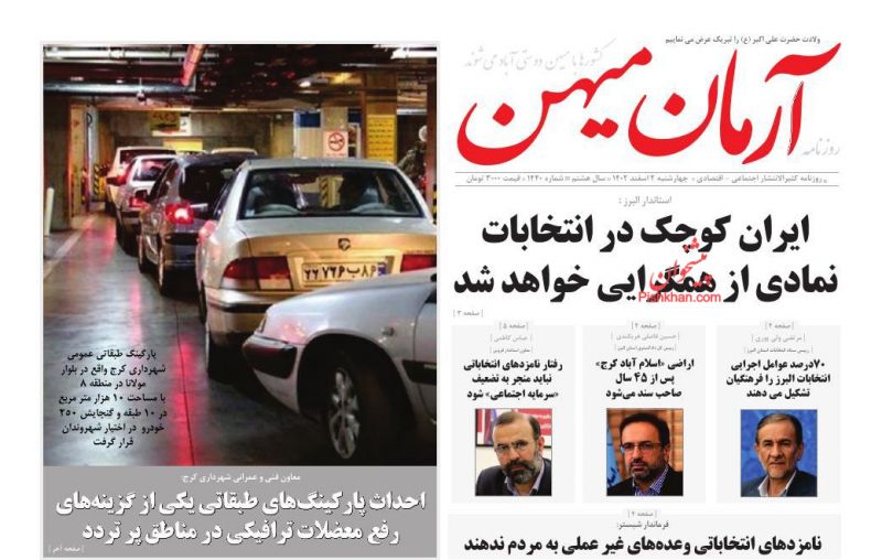 آرمان امروز ، پنجشنبه ۳ اسفند